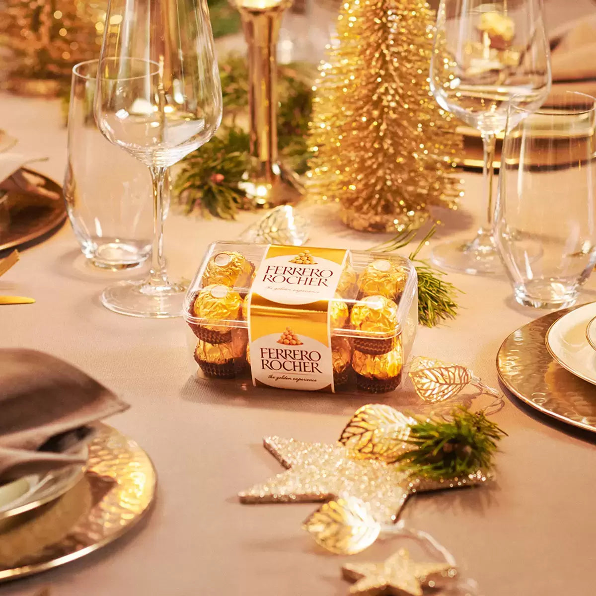 Ferrero Rocher offers a delicious taste experience due to its unique combination of layers and textures. A delicious crunchy, gently roasted hazelnut and velvety hazelnut filling wrapped in a light wafer shell and coated in creamy milk chocolate and finely chopped hazelnut pieces. Perfect for sharing with your loved ones, making any occasion special.
