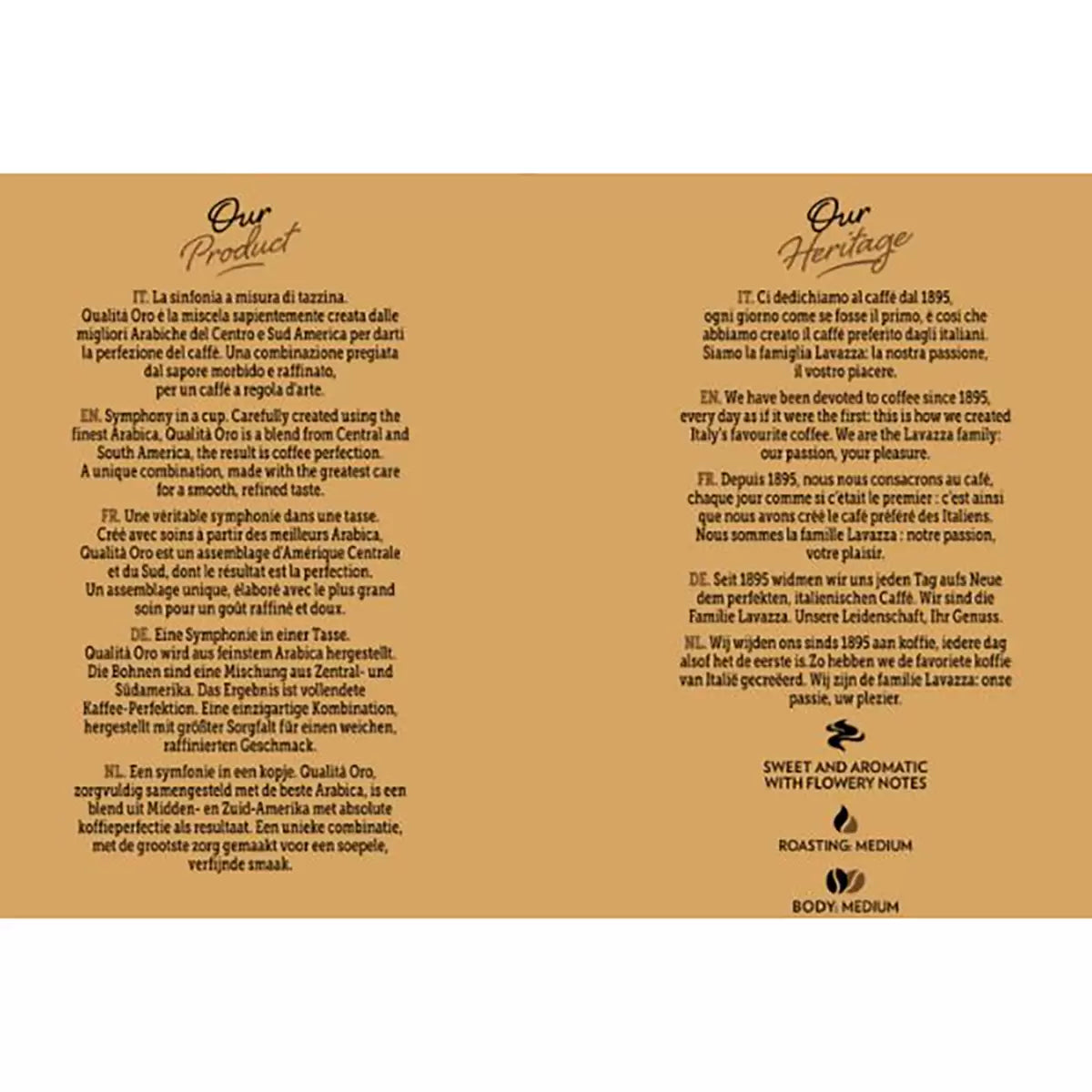 Lavazza Qualita Oro Arabica Ground Coffee is a true connoisseur's coffee by Lavazza, for those who love to savour a fine blend every day. Qualità Oro is a selection of coffee characterised by floral and fruity aromatic notes, for an espresso with a sweet, long-lasting and refined taste. It was also the very first Lavazza Blend, created in 1956 by Luigi Lavazza. This coffee is a selection of 100% Arabica from mainly Central and South America. It is medium roasting and has a 5/10 intensity level which gives this coffee a delicate aroma. It can be used with a moka pot, filtered coffee machines or a French press.